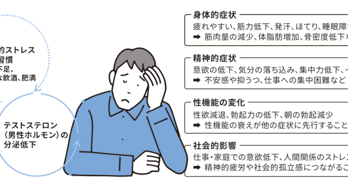 男性ホルモンの減少によるLOH症候群(加齢男性性腺機能低下症候群) みなさんは、男性にも更年…