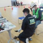 訓練でも、同様の初動から始まりました。その後、火災発生の知らせを聞いた職員は、役割分担を行い、それぞれのアクションカード(役割ごとの優先順・時系列に沿った行動指標を示したカード)に従って現場の指揮をとりながら、安全確認や避難誘導を行いました。