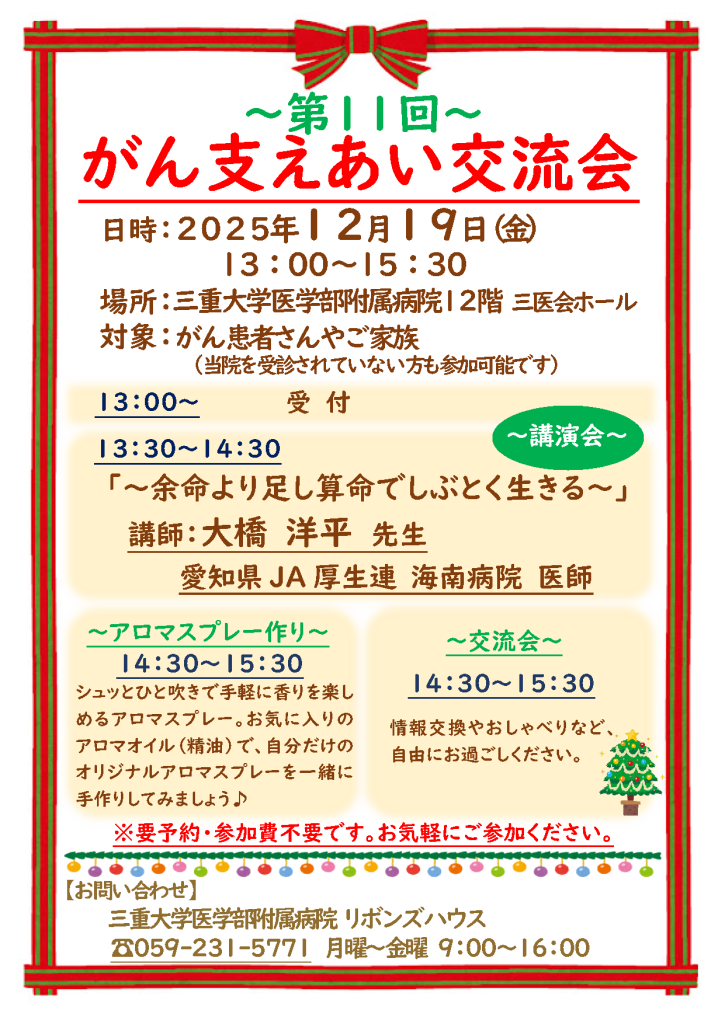 三重大学病院 リボンズハウス 059-231-5771 (内線:5132)