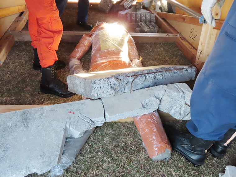 下敷きになった模擬傷病者(人形)